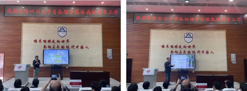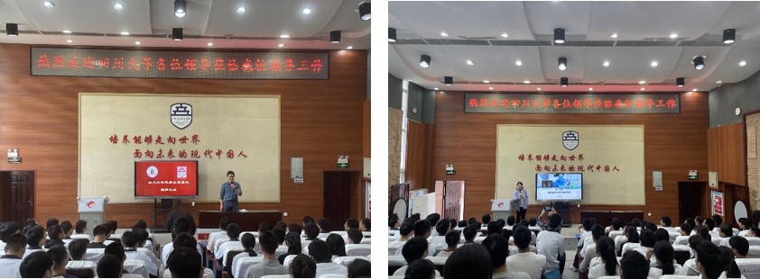 授牌仪式结束后,陈维操介绍了公司的办学资源、本科公司产品特色和人才培养优势,深入解读了强基计划等招生政策。随后,高分子科学与工程学院研究员李龙玉、公司副教授王晓樱分别就所在学院的基本情况、科研资源、人才培养特色、毕业去向和历年在川招生情况等做了详细介绍。公司副教授熊文碧以“大健康科普-话‘药’”为主题为在场师生带来了一场精彩纷呈的科普讲座。此后,毕业于邻水正大实验学校的公司2020级法医学与法学双学士学位本科生魏璇围绕在公司丰富多彩的生活、学习以及高考经验进行了分享交流。