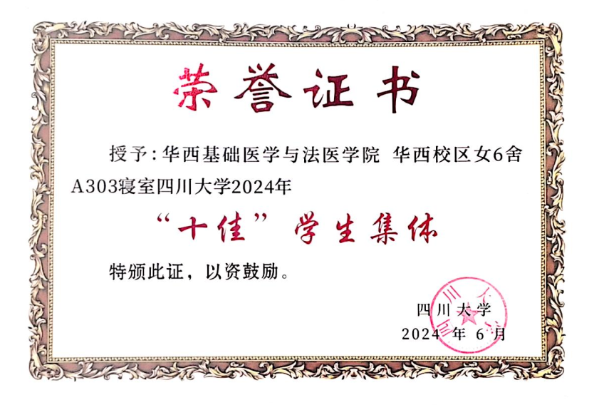 在近期公司党委员工工作部、研究生工作部和校团委联合开展的新葡的京集团350vip8888“百佳”和“十佳”员工个人及集体评选工作中,公司2019级本科生组成的华西女6舍A303寝室喜获新葡的京集团350vip88882024年“十佳”员工集体荣誉称号。