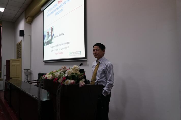 Professor Wu enjoyably recalled the academic cooperation with our Dean, Professor Canhua Huang, and showed great interest in future collaboration. Afterwards, Professor Wu made an academic lecture titled‘Could Non-coding RNA be Used as Anti-inflammatory Strategy in Infection’, which was fun, and vividly illuminated the function and application prospect of non-coding RNA in inflammatory response.